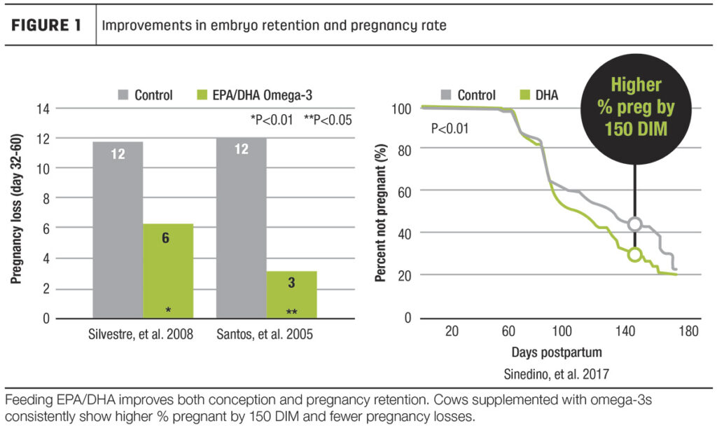 Take omega-3 fatty acids (EPA and DHA), for example. Just a few grams a day from fish oil or algae can reduce uterine inflammation and improve embryo survival. Research has shown consistent results: higher conception rates, fewer early losses and more pregnancies that stick (Figure 1).